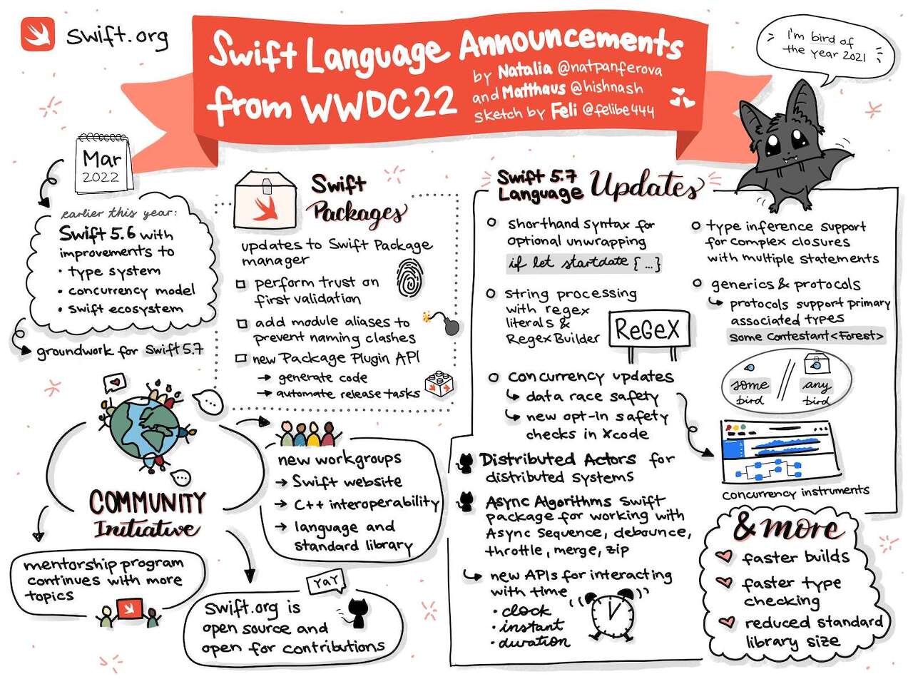 Swift 5.7 is now officially released! Swift 5.7 includes major additions to the language and standard library, enhancements to the compiler for a better developer experience, improvements to tools in the Swift ecosystem including SourceKit-LSP and the Swif