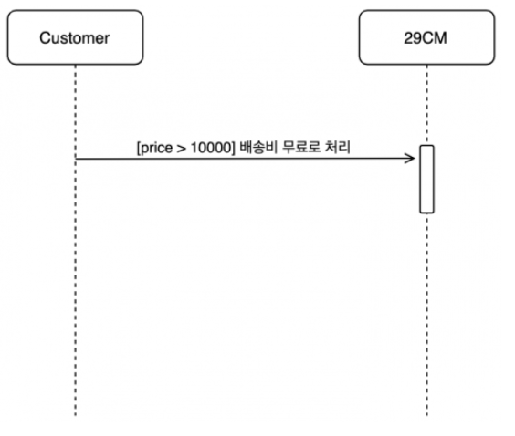 | 동기 메시지(Synchronous message) | 메시지 전송 객체가 계속하기 전까지 동기 메시지에 대한 응답을 기다림. 프로그램 내 일반적인 함수 호출과 동일한 동작 방식의 메시지를 표현 |