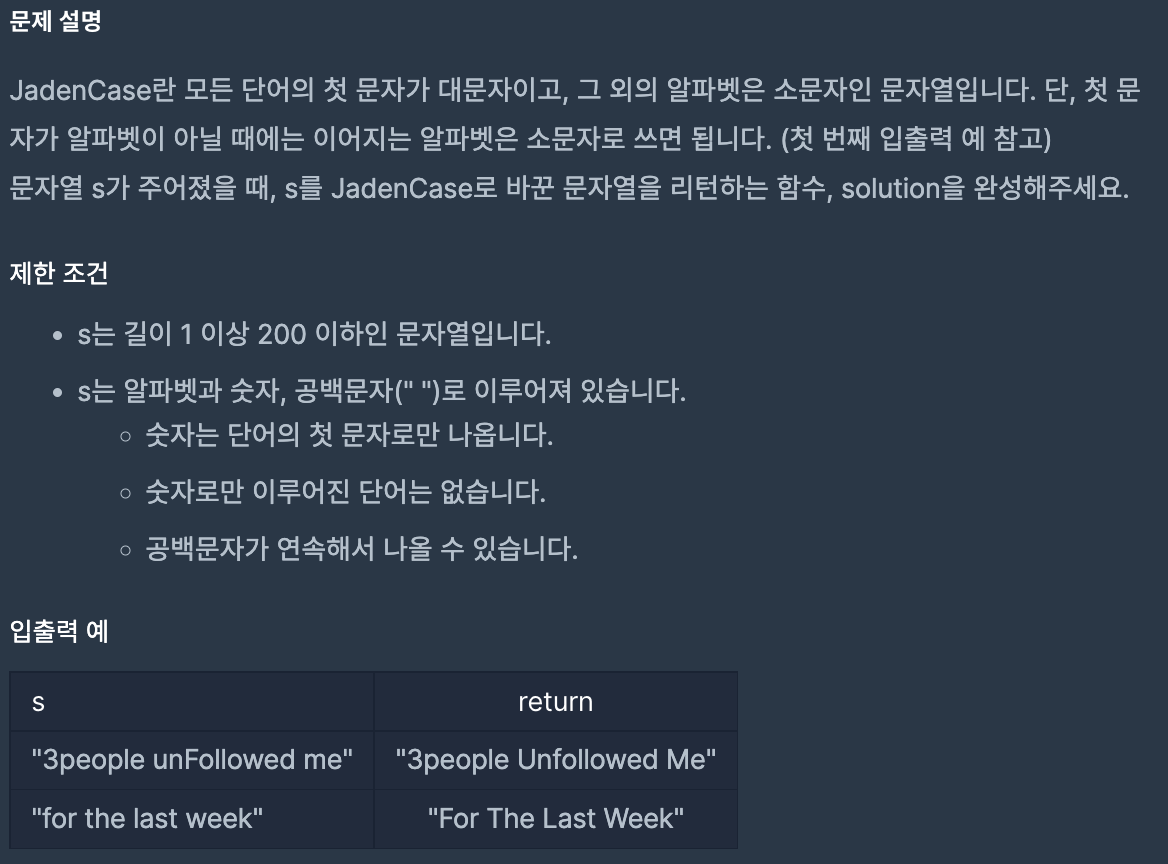 [프로그래머스] PRG-JadenCase 문자열 만들기