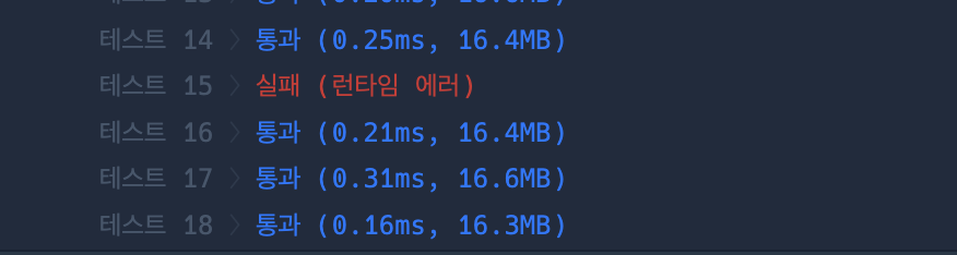 문제없이 정상적으로 올 패스 하는 듯 했으나, 테스트 15만 실패..