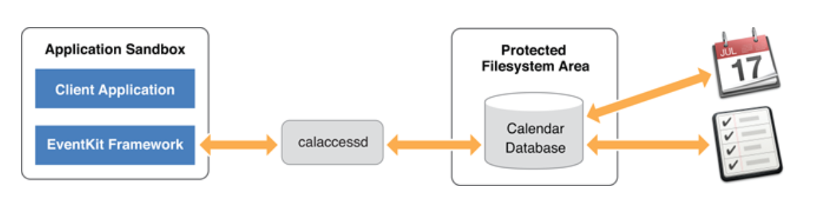 - EventKit를 사용하여 달력 항목을 변경하면 연관된 달력(CalDAV, Exchange 등)에 자동으로 동기화됩니다.
