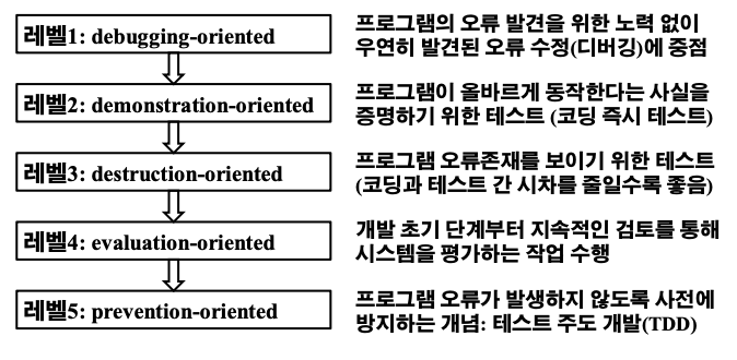 - 테스트는 프로그램에 오류가 있음을 보여줄 수 있지만, 오류가 없음을 보여줄 수는 없다.