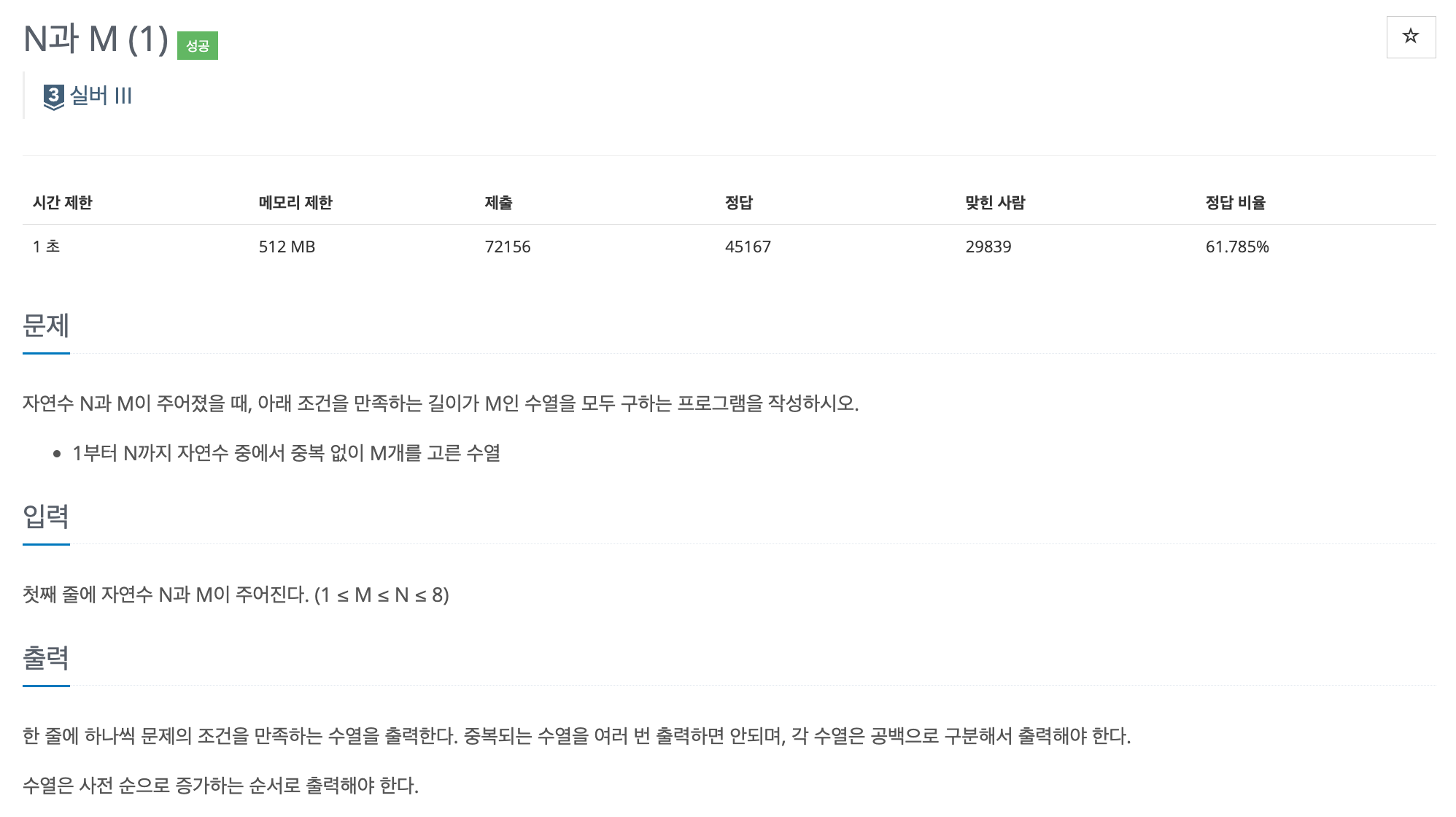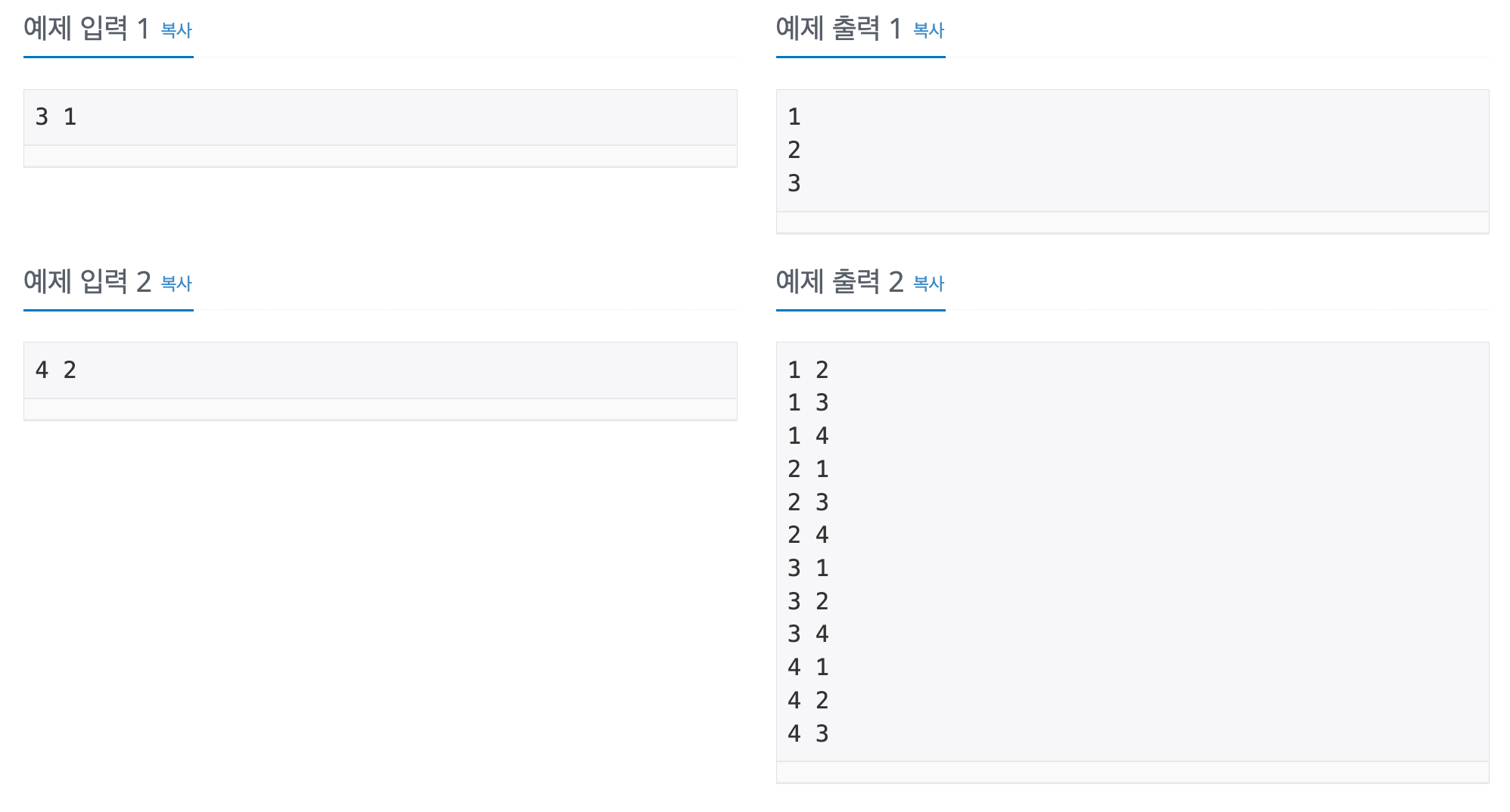 N과 M을 입력받아 nPm 의 순열을 구하는 문제였다.
