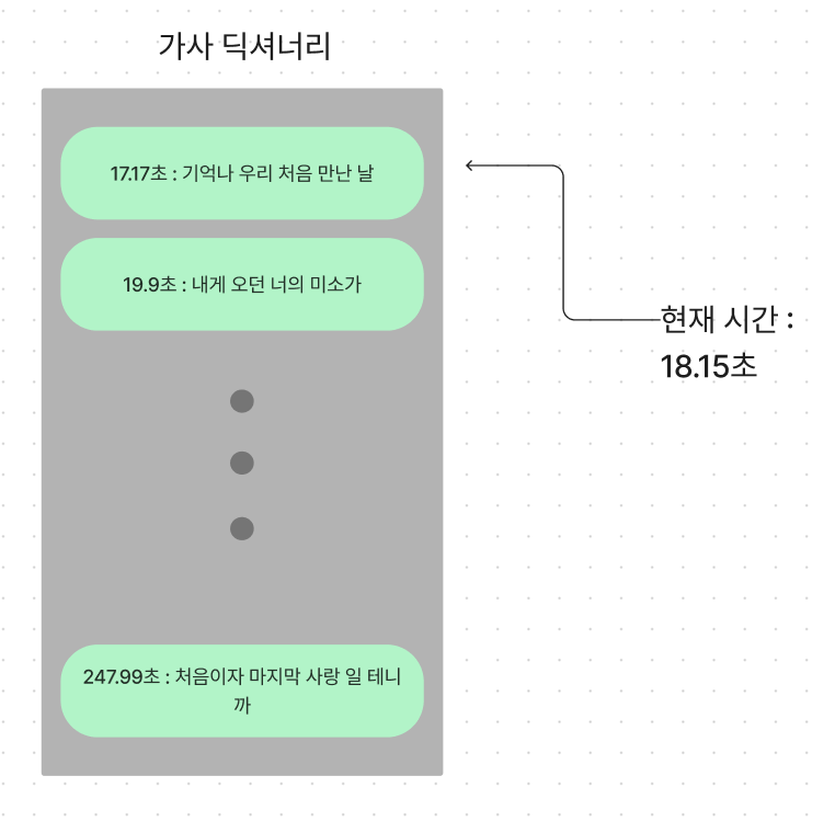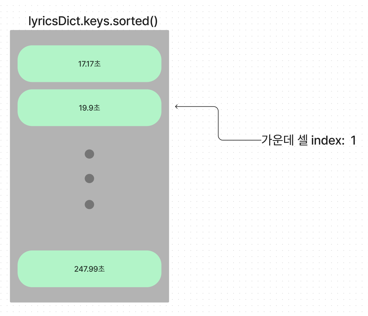 여기서의 포인트는 시간을 현재 재생중인 가사의 cell index로 어떻게 변환할지 입니다.