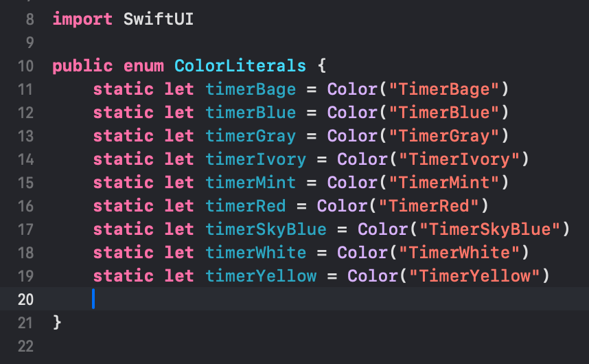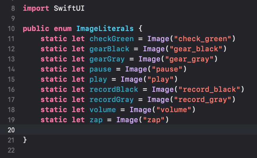 Color, Image Assets 직접 관리하는 방식에서 다시 예전 방식인 직접 ColorLiterals, ImageLiterals Enum 을 만들어 사용하는 방식으로 돌아가기로 했다. 이 문제 하나로 시간을 너무 잡아먹고 있기도 하고, 사실 컬러와 이미지가 몇개되지 않아 직접 Enum을 만들어 관리한다고 해도 코드가 몇줄 되지 않는다. 한가지 단점이라고 하면 오타 이슈에 취약하다는 점인데 정신을 똑바로 차리고 코드를 치는 것으로 해결하기로 했다.