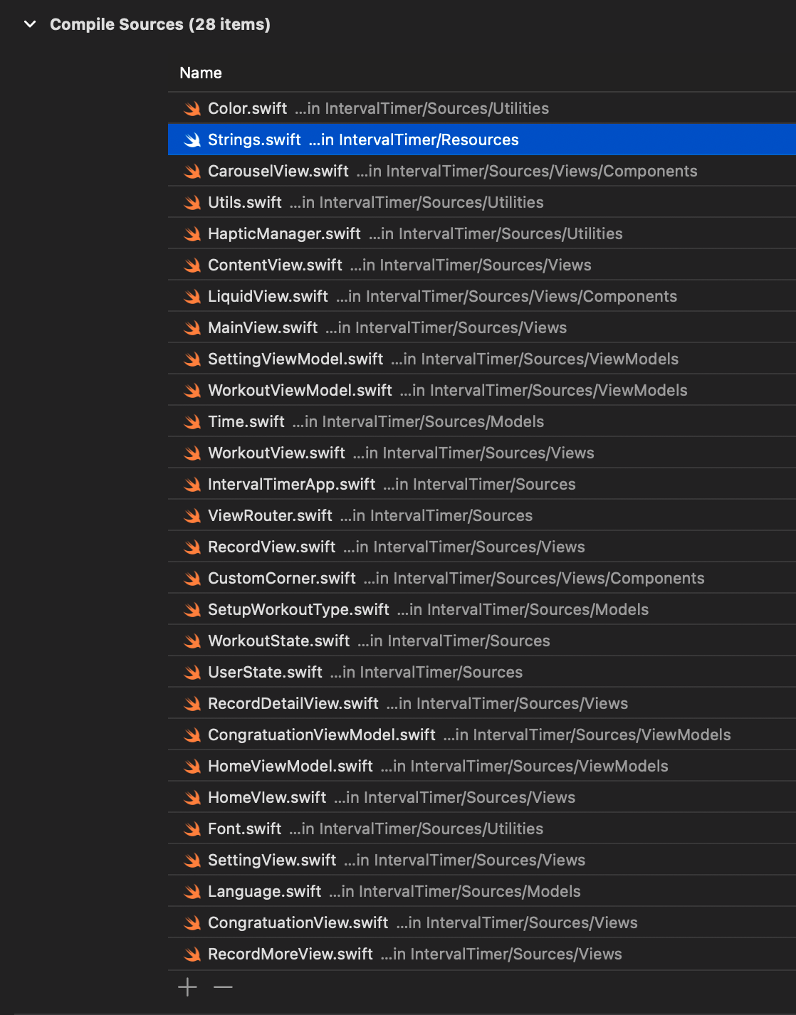 위의 Enum들이 Color와 Image를 사용하는 View 들과 같이 Sources 폴더에 넣으면 에러가 안나는데, Resources 폴더에 넣고 아카이빙하면 다시 에러가 발생한다. 어느 폴더에 있거나 소스를 컴파일하는건 같은데 왜 결과가 다를까?
