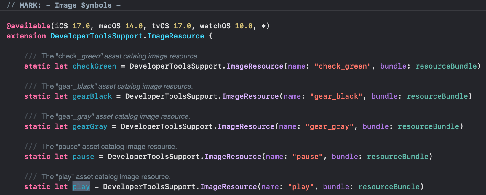3번 ImageResource 또한 XCode 15에서 생긴 GeneratedAssetSymbol 파일에 있다고 한다.