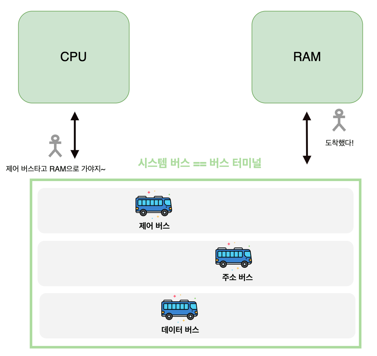 쉽게 이해하자면 시스템 버스라는 버스 터미널 안에 버스가 지나다니고, 데이터와 신호들이 각 버스를 타고 이동한다고 이해하면 쉽습니다.