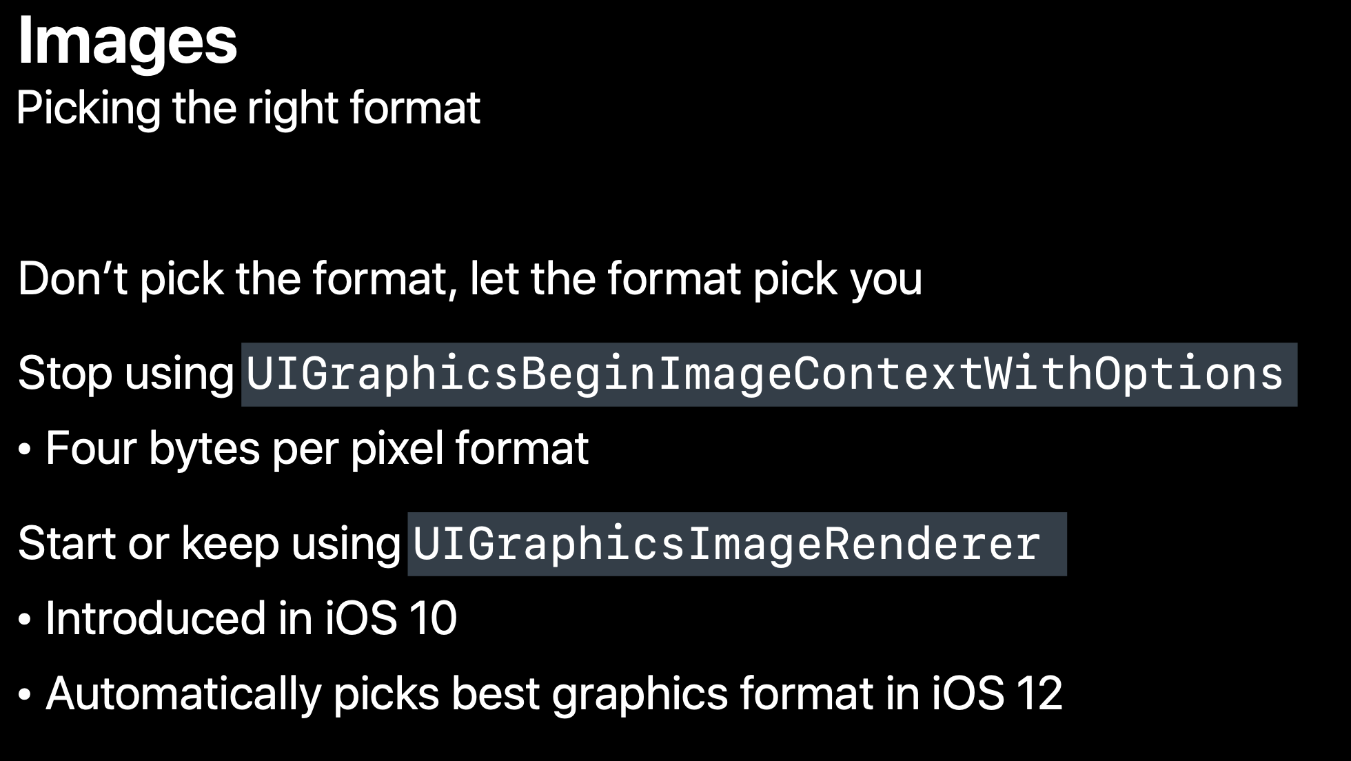 UIGraphicsImageRenderer는 iOS 10+, 최적의 렌더링 포맷을 자동으로 선택합니다.
