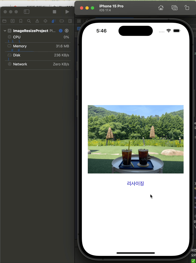 코드 내용은 간단합니다. 파라미터로 새로 적용할 가로 길이를 받고, 원본 비율을 유지하며 리사이징합니다. UIGraphicsImageRenderer객체를 생성하고 image()함수의 클로저를 통해 리사이징해줍니다.