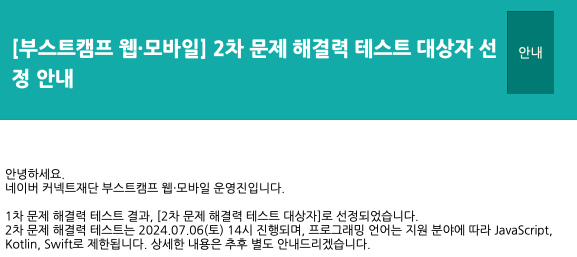 그리고 1차 테스트를 통과해 2차 문제 해결력 테스트 대상자가 되었습니다. 2차 문제 해결력 테스트 대상자는 베이직 과정 입과 여부가 선택 사항이었지만, 2차에서 떨어지면 아무것도 남는 게 없을 거라고 생각해 마지막 과정이라고 생각하고 베이직 과정을 열심히 임해보고 싶었습니다.