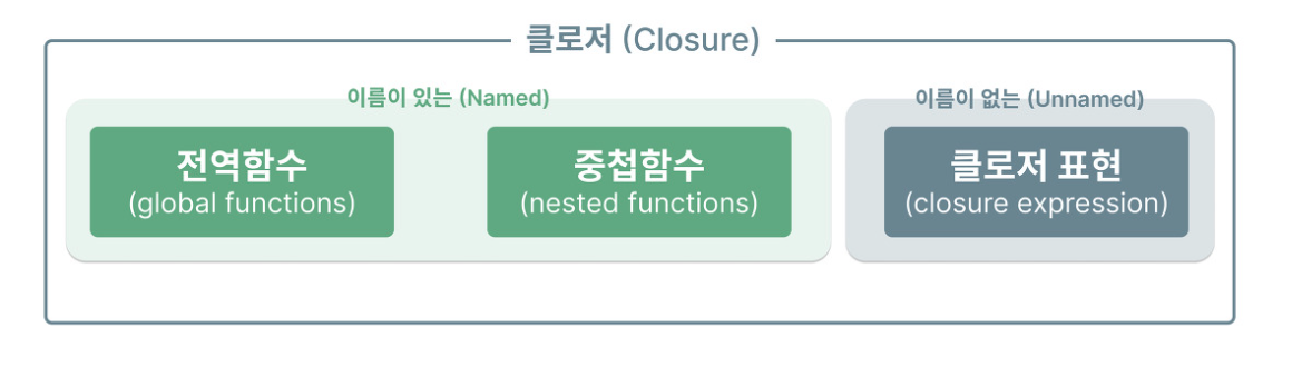 하지만 func 키워드를 활용한 이름이 존재하는 함수또한 클로저에 포함됩니다.